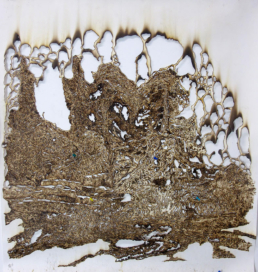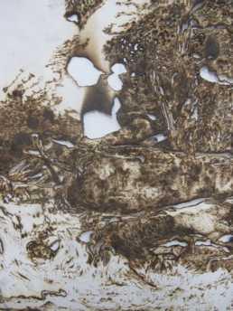 Drawings, burnings, scorching, making the act of drawing, of pictorial depiction with all its connotations simultaneously generative and destructive.