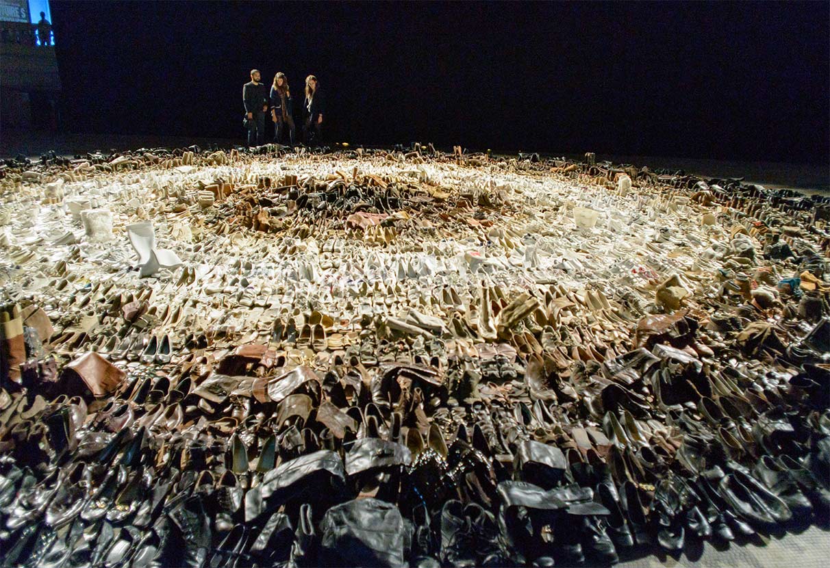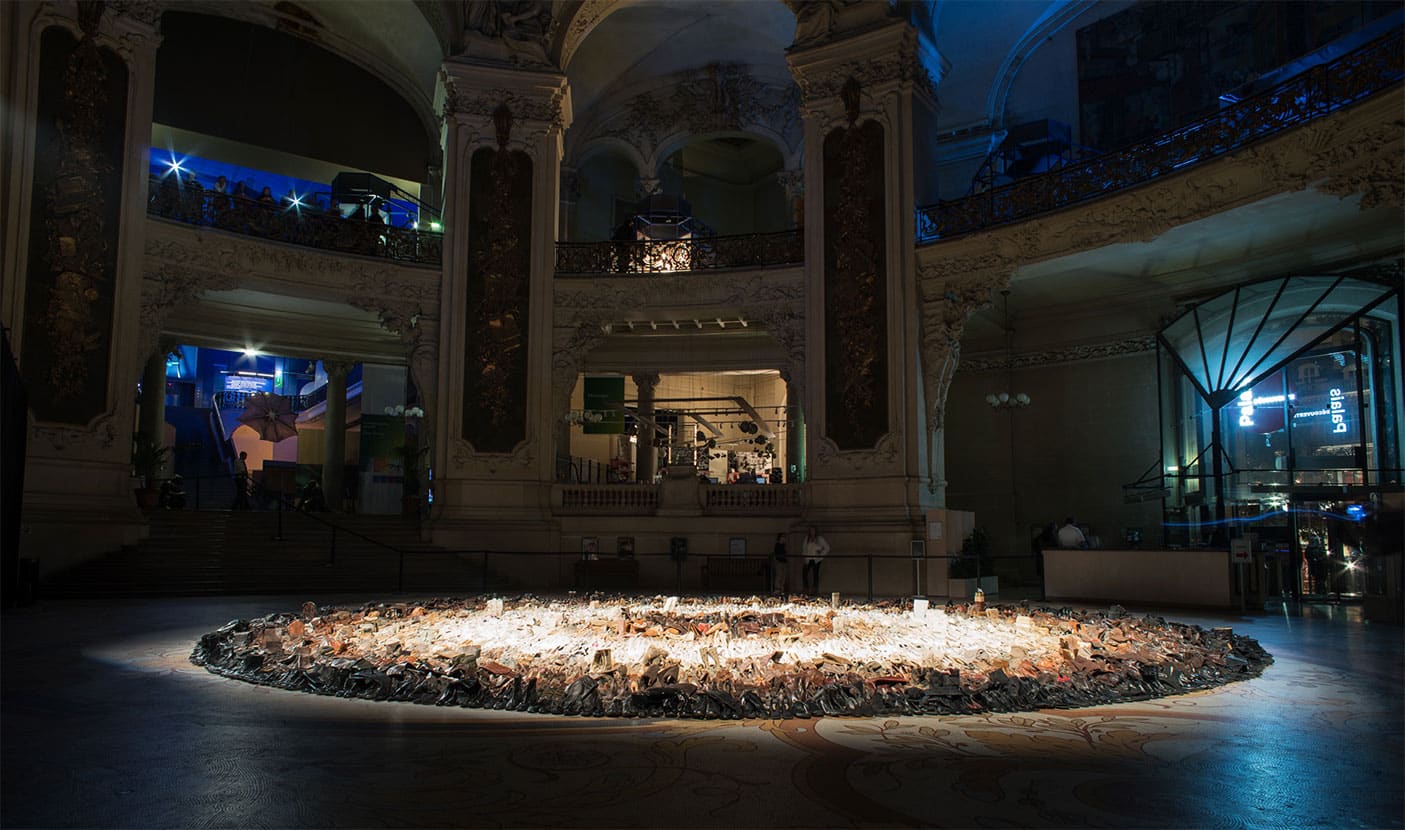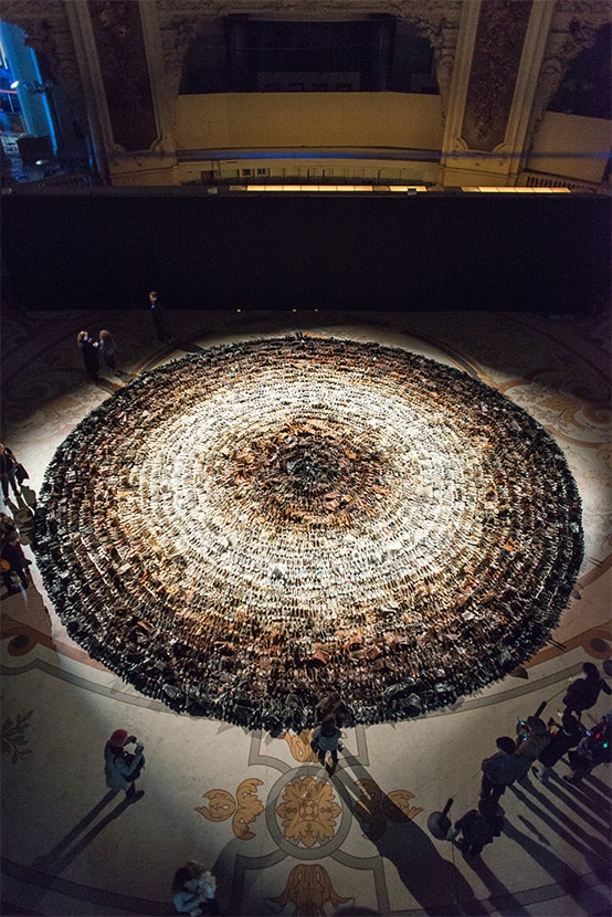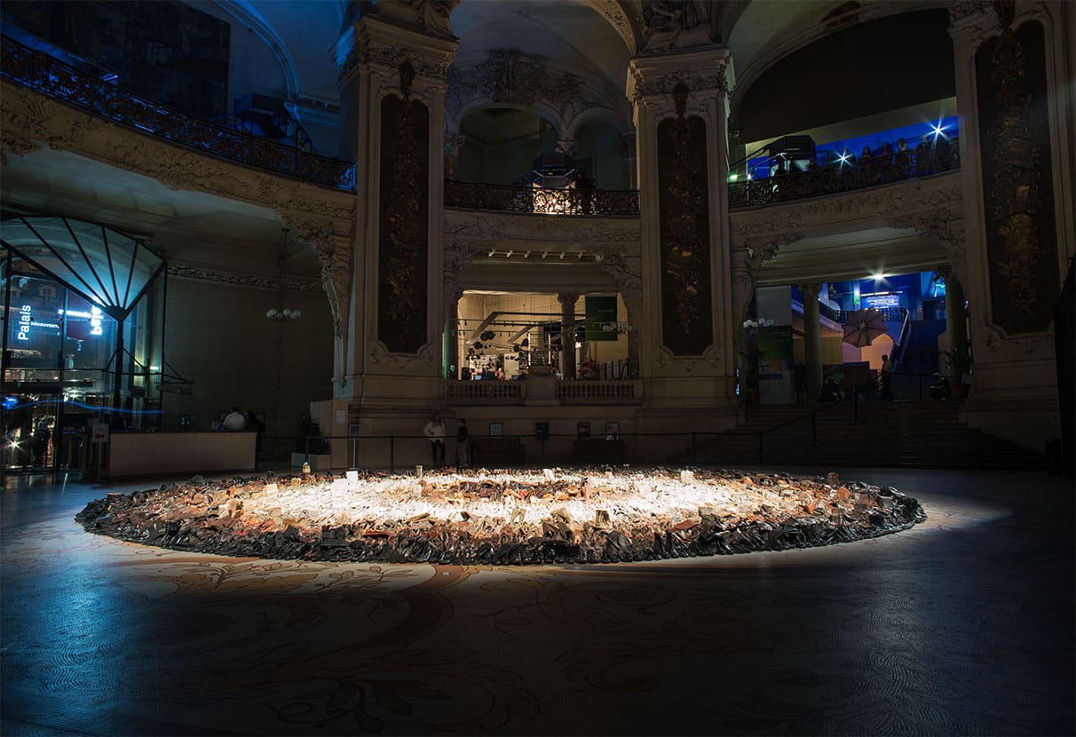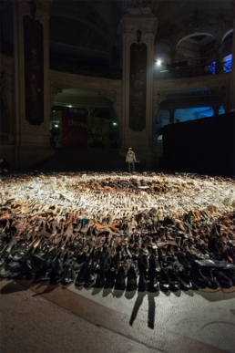 Installation of 2,949 pairs of shoes, fourteen meters in diameter, Nuit Blanche, Paris, 2012.