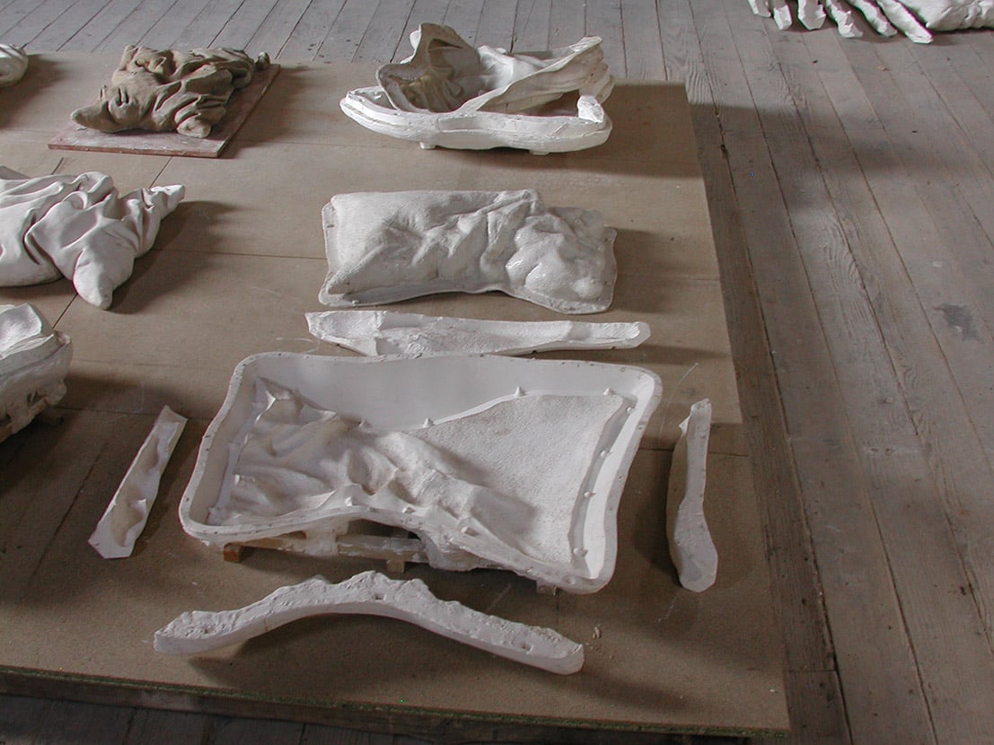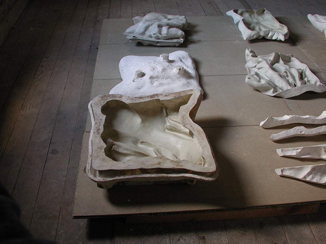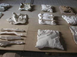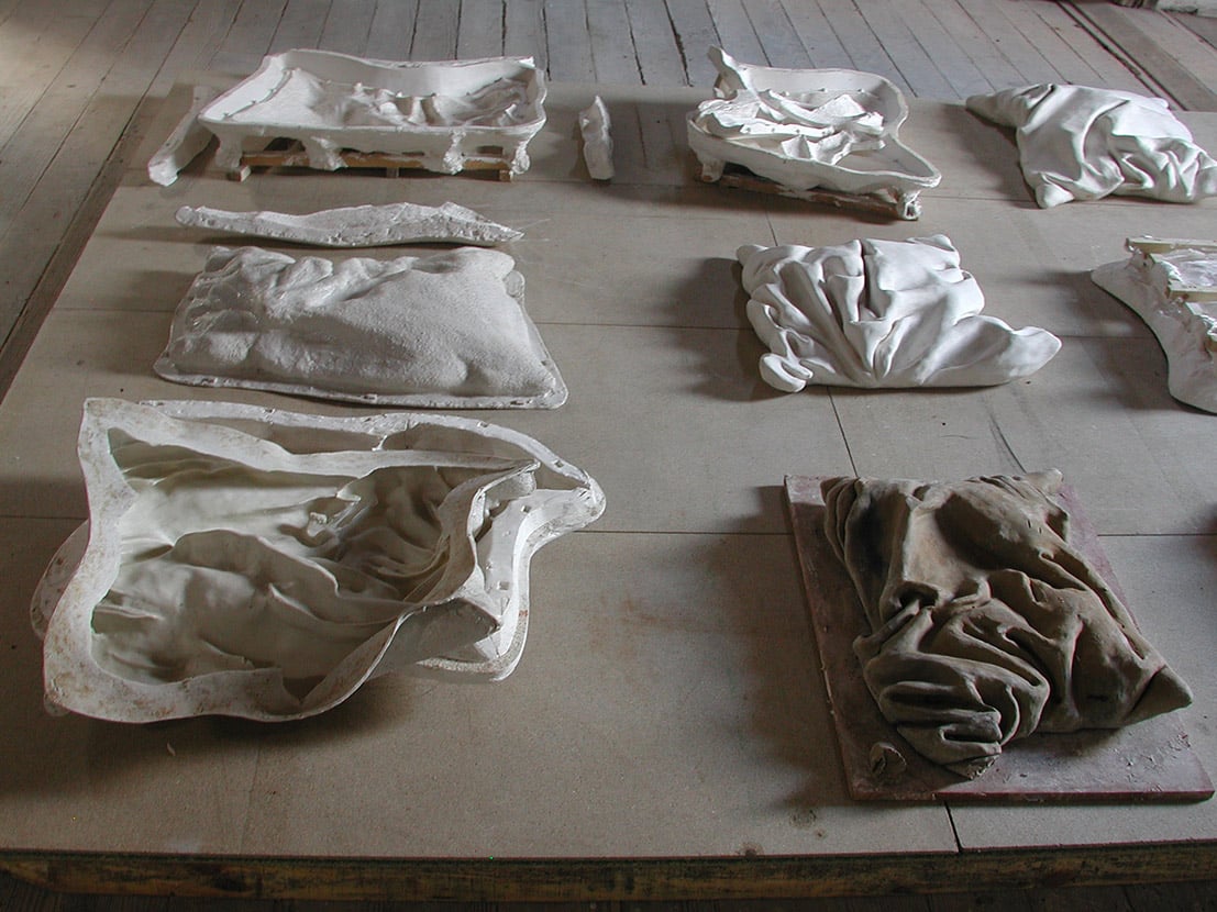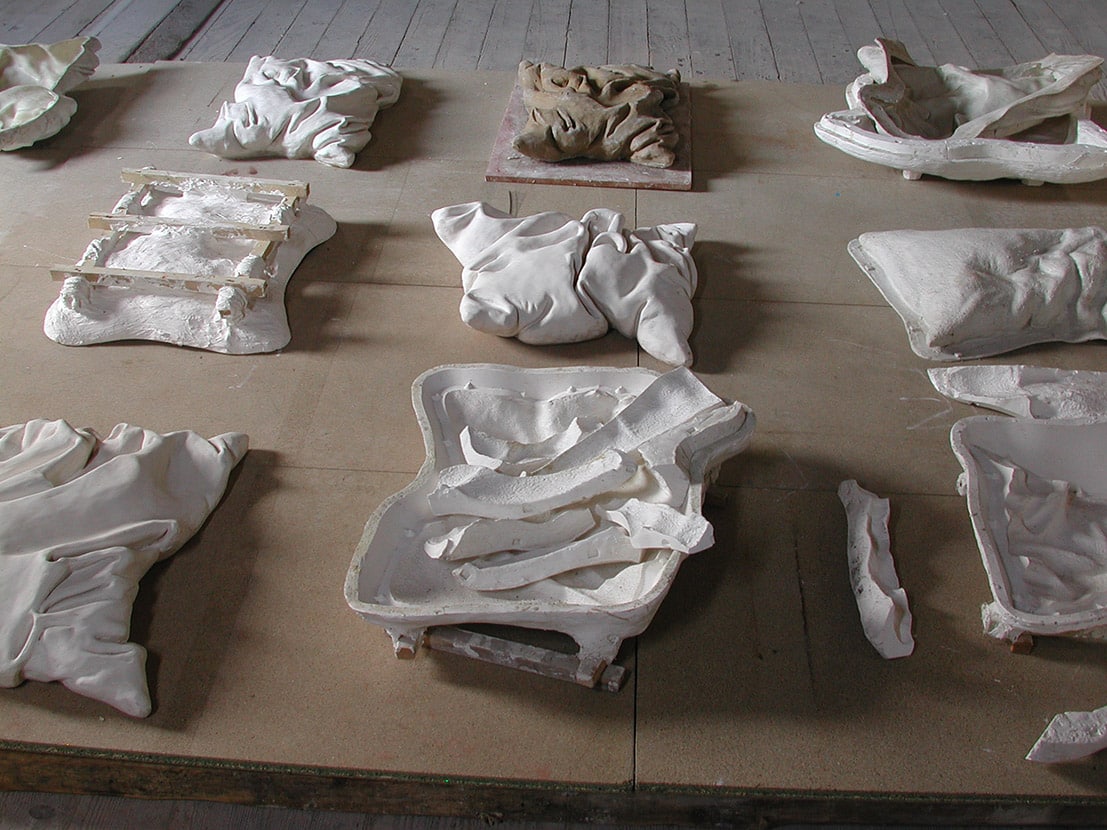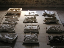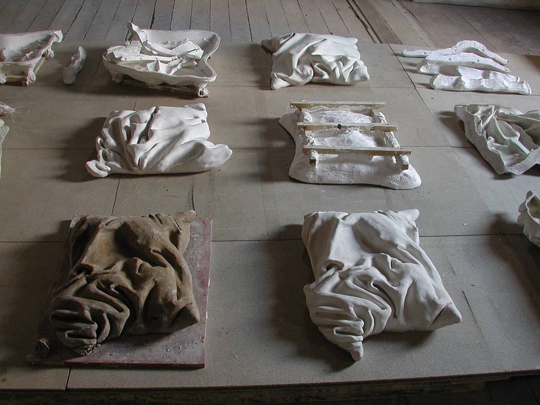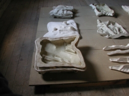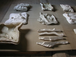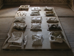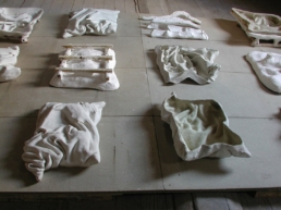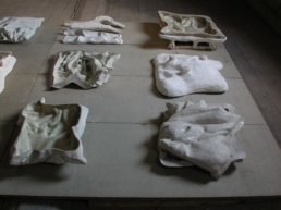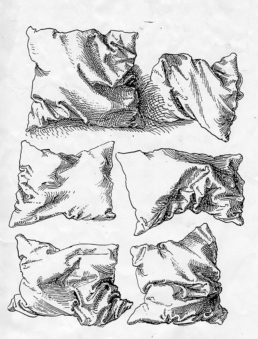 Dürer’s images generously decorated my room as a child in Germany. The ‘Praying Hands’, ‘The Rabbit’, ‘Melancholia’ etc. He embodied the protestant genius and had been the official artist of the Nazis. In 1493 the young Albrecht Dürer drew six pillows, probably the same one in six different states, as if distorted and tortured by nightmares. The style is characteristic of Dürer, between expressionist charicature and corporeal hyper-realism and yet their layout is reminiscent of Carl Andre’s Bricks in the Tate. The image of these pillows came back to me whilst I was making objects that were scatalogical, intestinal or phallic in form; chromed hygienic tools for narcississtic control freaks.